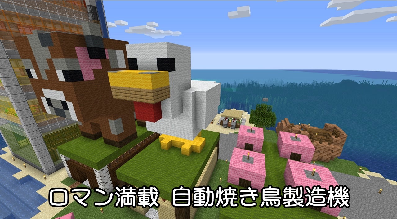 Jan 05, · 焼き鳥自動製造機 ⇒ 完全自動!焼き鳥製造機とタマゴ収穫機 焼き鳥と羽を同時に製造できる 便利装置となります 革(ステーキ)製造機との長所は 完全自動で食料が入手できる点 空腹ゲージの回復量は ステーキの方が上ですけどねw 1度作ってしまえばMay 02, 18 · マインクラフトBE版v1213で全自動焼き鳥製造機に変化がありました。まずタマゴ当たっても飛び跳ねなくなったこと。そしておそらくバグなので修正されると思いますが、ニワトリがマグマで燃えない問題の発生。Jun 11, 21 · 焼き鳥自動製造機 「焼き鳥」を自動で大量に入手できる、「溶岩」を使った焼き鳥自動製造機です。 焼き鳥製造機を作ると食料に困る事がなくなる 為、優先して作っておきたい装置です。 ︎焼き鳥自動製造機の作り方を詳しく見る 関連記事 ︎肉一覧に戻る